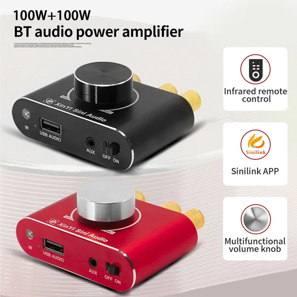 X100H 100W Stereo Amplifier Board 12/24V Speaker Audio Amplifier BT 5.1 AUX USB U-disk Input Amplification Module APP Control