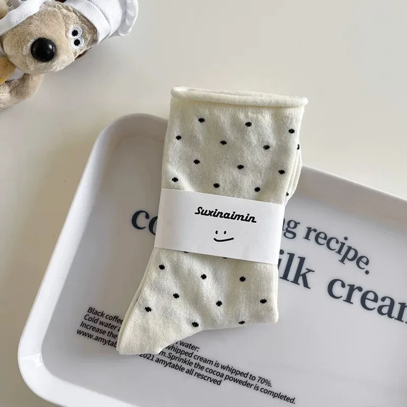 ALI shop - search results ... ... 5 Pairs Polka Dot Socks, Cute College Style Rolled Edge Mid Tube Socks, Women's Stockings & Hosiery ::: 2021 ::: :::