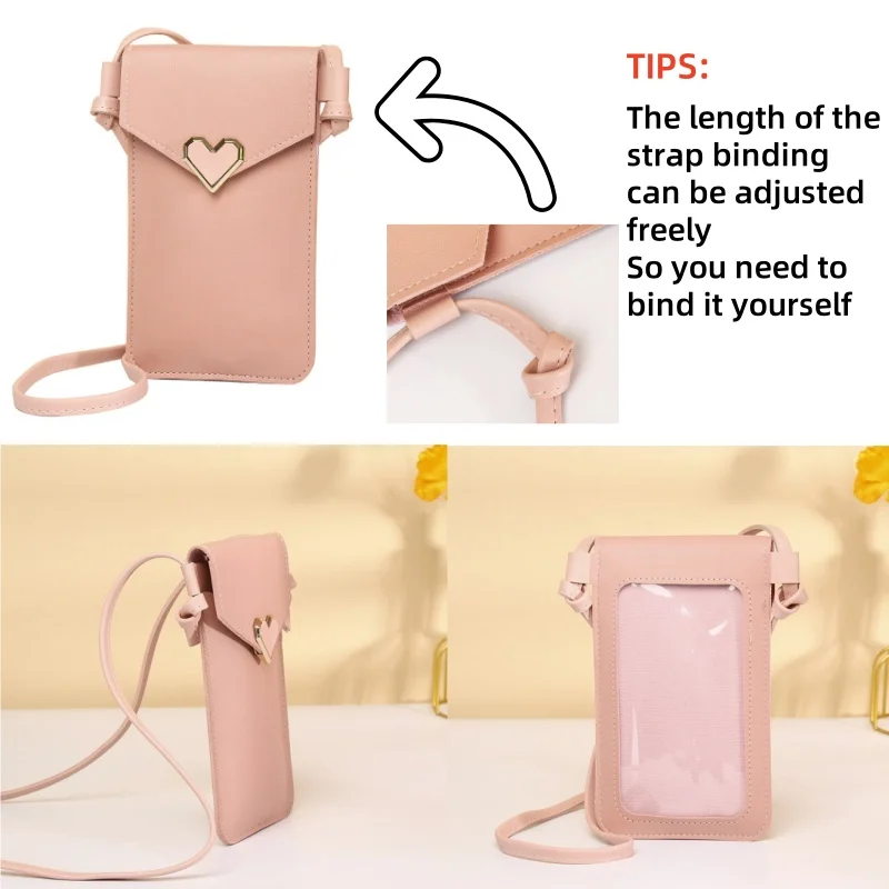 Women Cell Phone Bag Shoulder Transparent Card Holders Girl Handbag Ladies PU Leather Clutch Wallets Purse