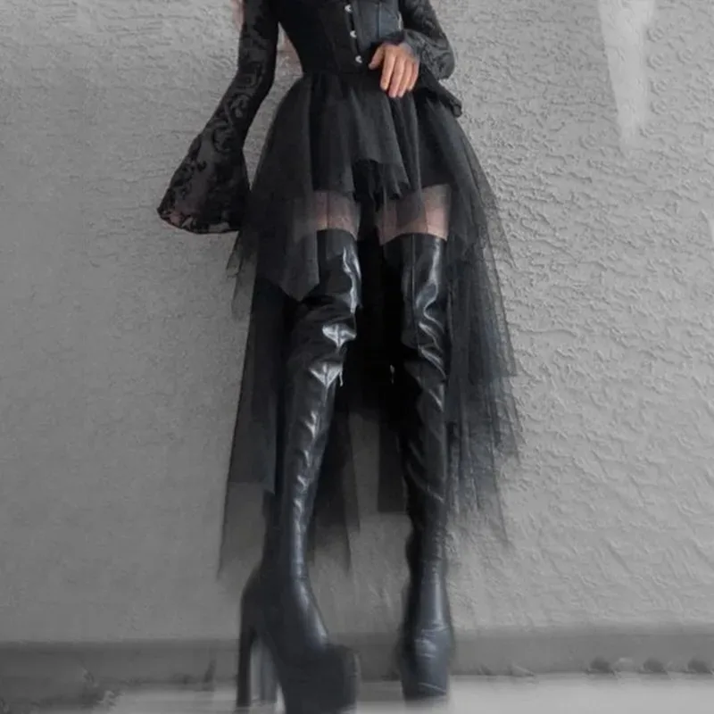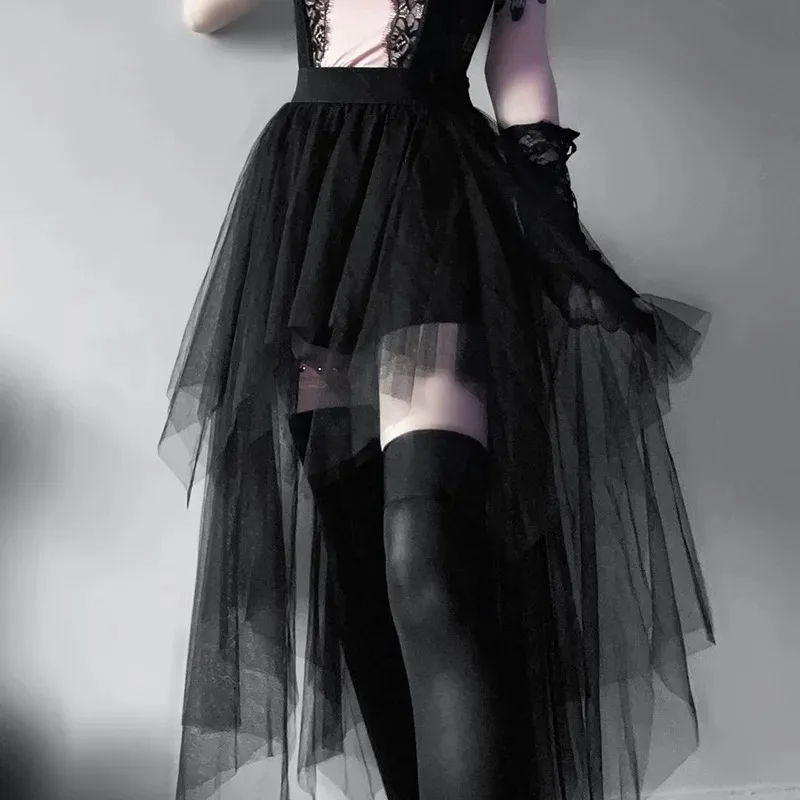 Net Yarn High-Waisted Irregular Skirt for Women Summer New European and American Gothic Style Versatile Casual Skirts