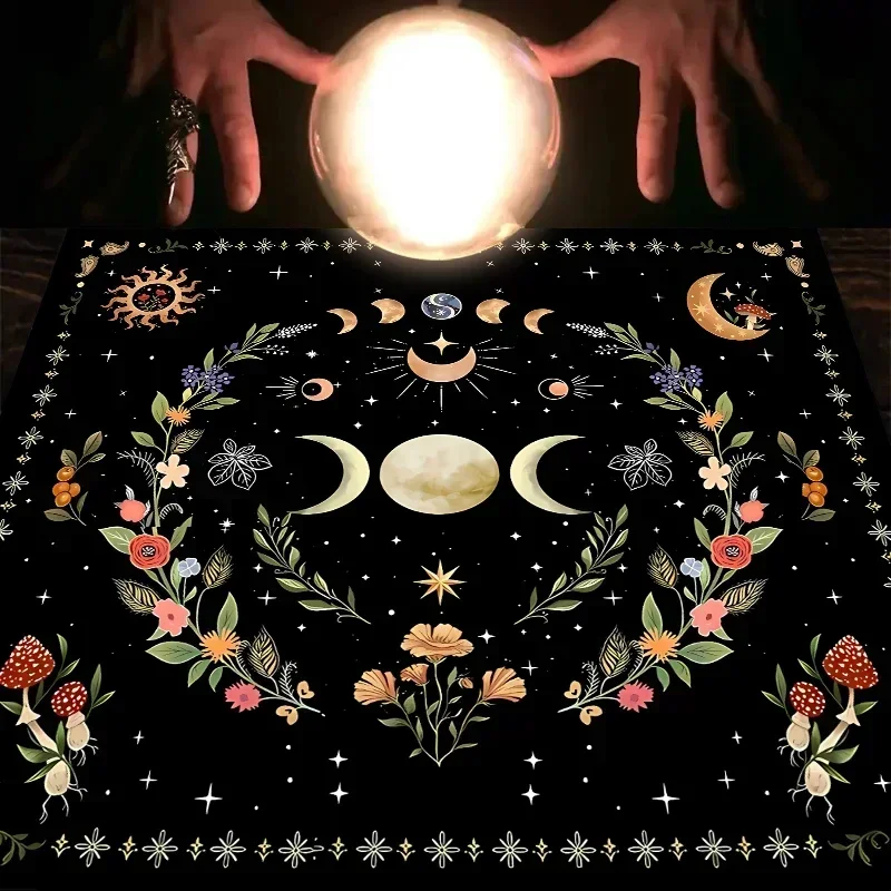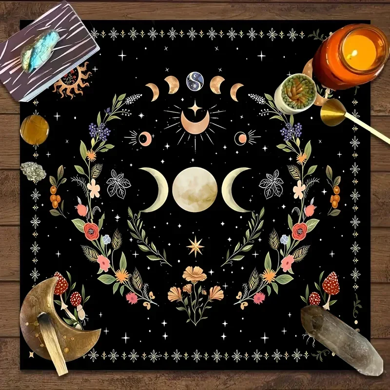 1pc Tarot Tablecloth, Altar Cloth, Moon Phase, Sun, Starry Sky, Flowers, Witchcraft, Altar Ritual Decoration Props