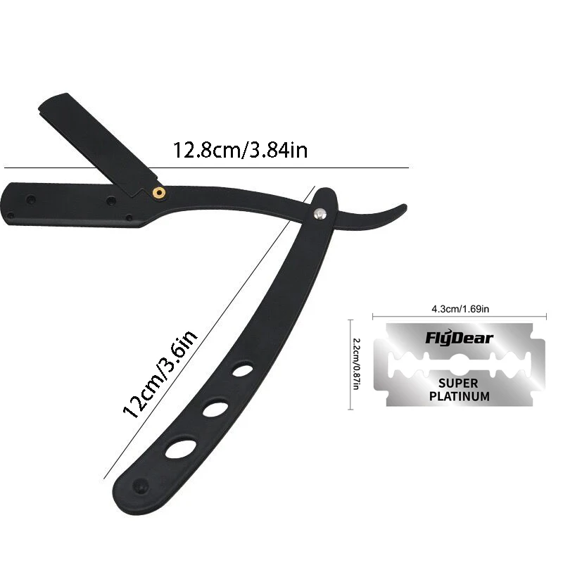 Men Shaving Barber Razor Black Classic Folding Shaving Knife Armpit Hair Pubic Hair Shaver Stainless Steel Straight Razor Holder