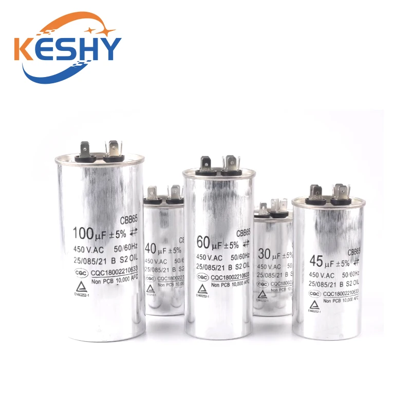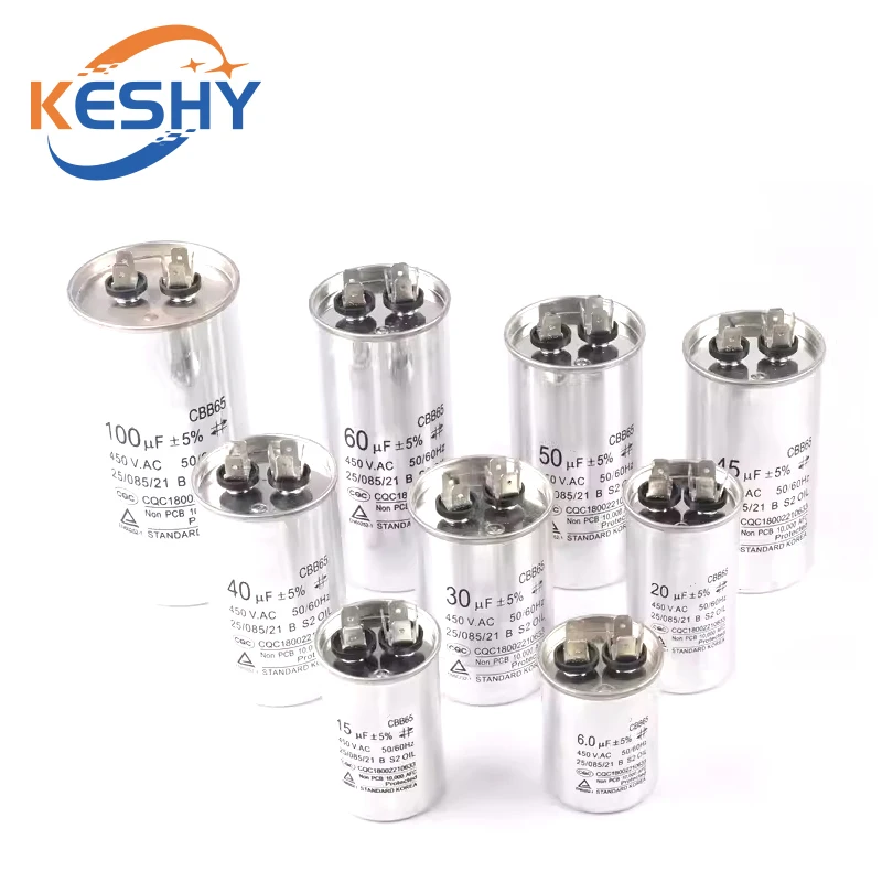 CBB65 AC Motor Capacitor Air Conditioner Compressor Start Capacitor 450VAC 5uF 20uF 25uF 30uF 35uF 40uF 45uF 50uF 60uF 70uF 5%