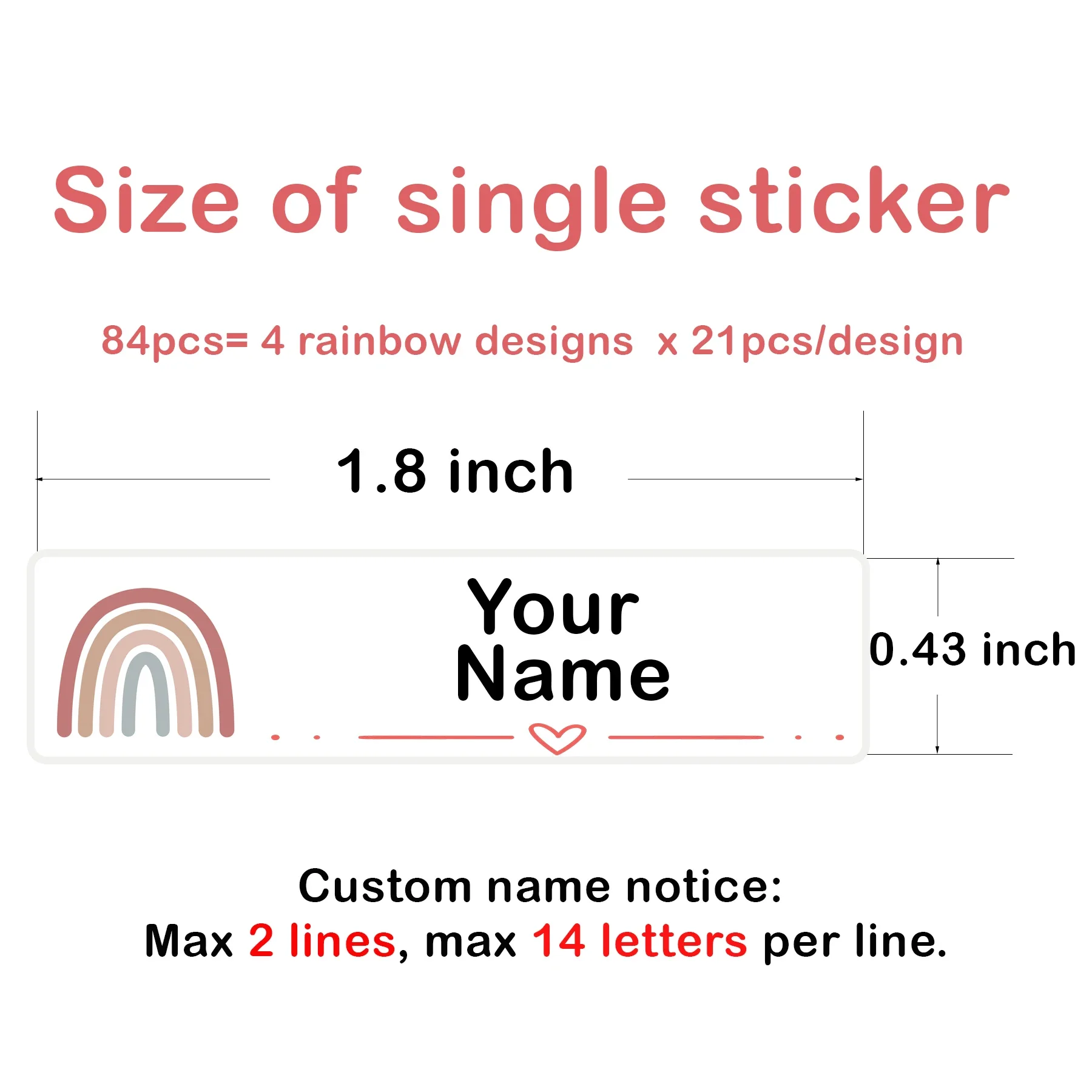 80pcs Custom Waterproof Name Stickers Tags for Girls Rainbow Personalized Labels for Wattle Bottles, Backpacks, School Supplies