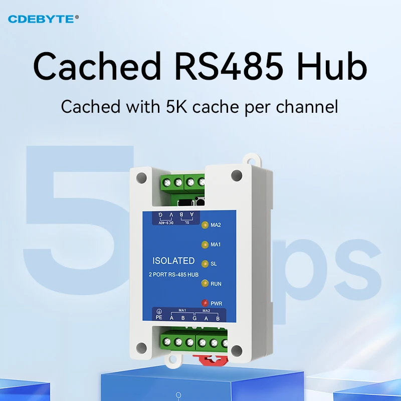 Industrial 2way Cache Type RS485 to 1way RS485 Hub DC 8~28V Optical Isolation Multi to one Hub CDEBYTE E810-R21 ESD Protection