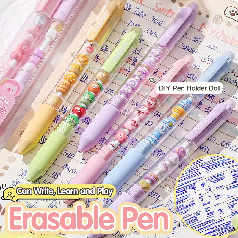 Press to Wipe pen Neutral Pen Ballpoint Pen Third Grade Easy to Wipe Student Cartoon Crystal Blue Neutral Pen Thermal Eraser