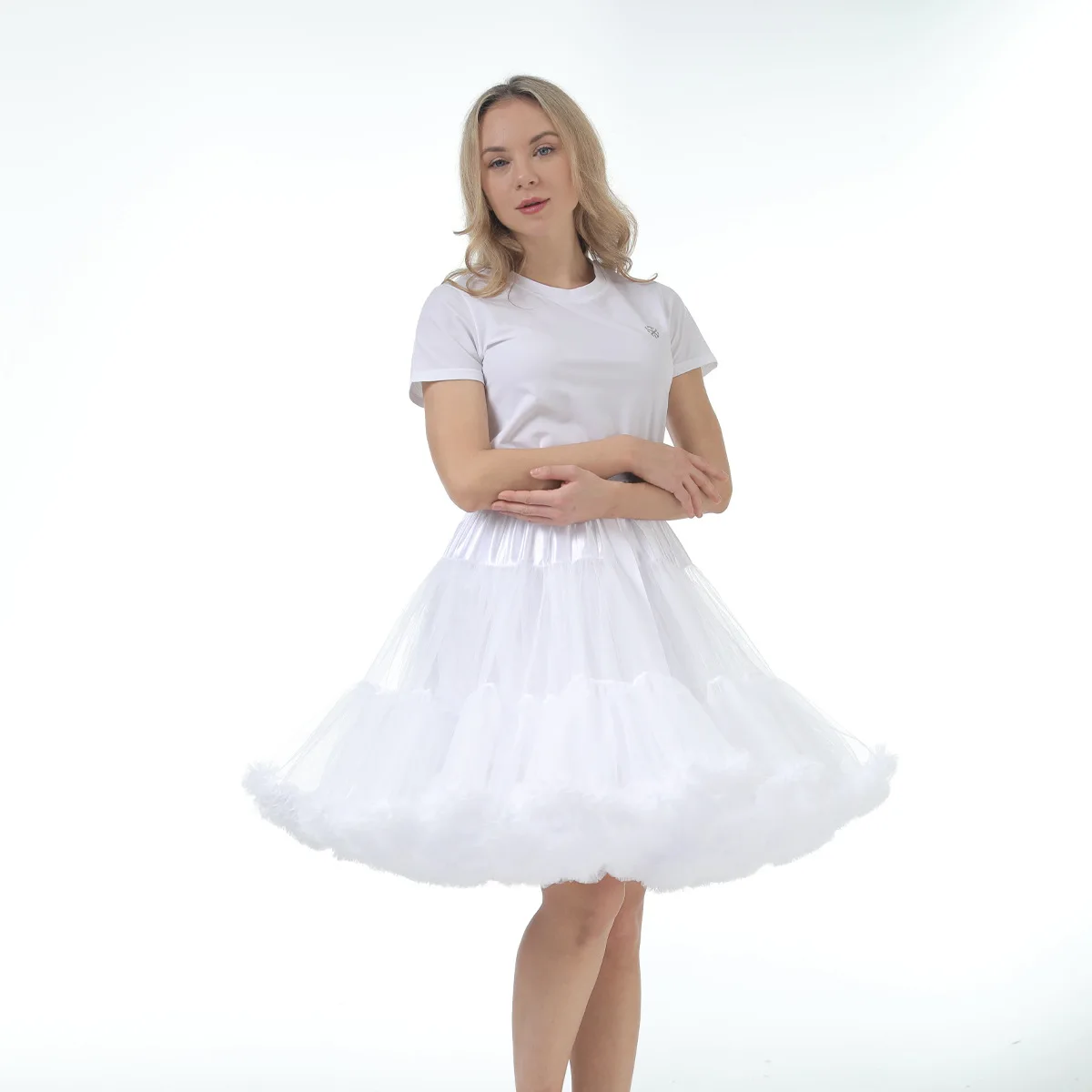 55CM Women's Elastic Waist Soft Tulle Petticoat Puffy Tutu Tulle Skirt Princess Ballet Dance Pettiskirts Underskirt Lolita Skirt