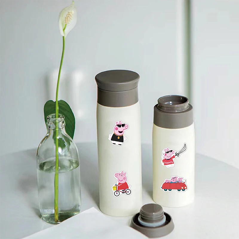 51pcs Peppa Pig Sticker Children's Cartoon Doodle Sticker Pen Box Water Bottle Refrigerator Bag Wall Decoration Small Gifts Toy