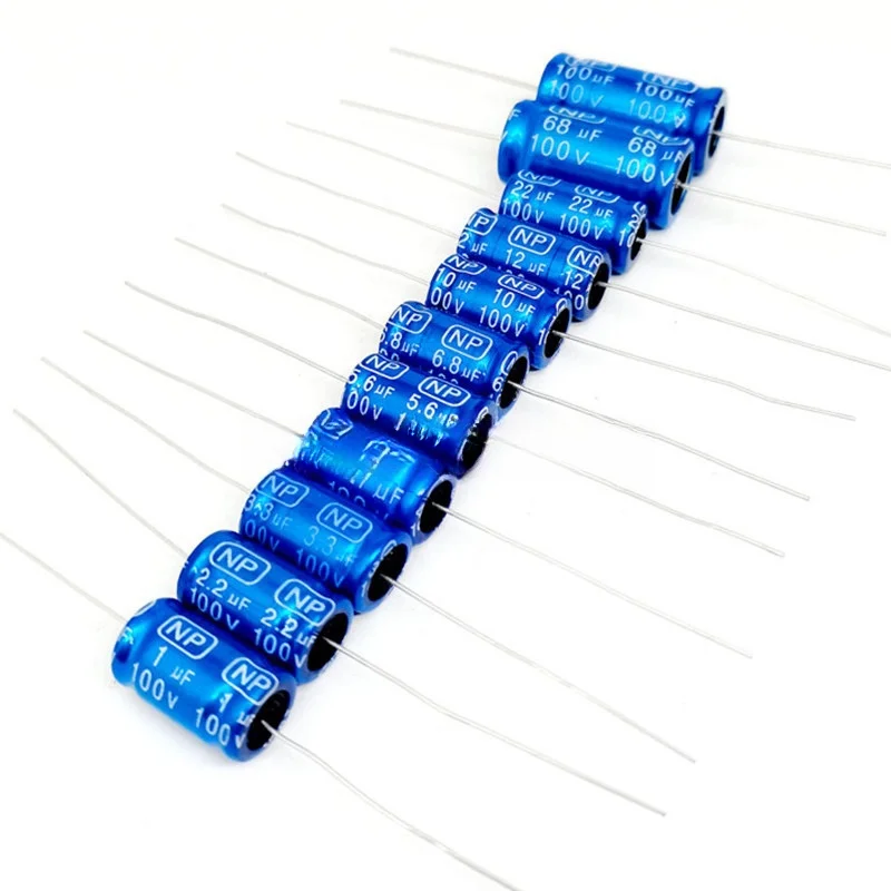 5PCS 2.2/3.3/4.7/6.8/100UF/100V Tweeter Stepless Axial Electrolytic Crossover Horizontal Capacitor