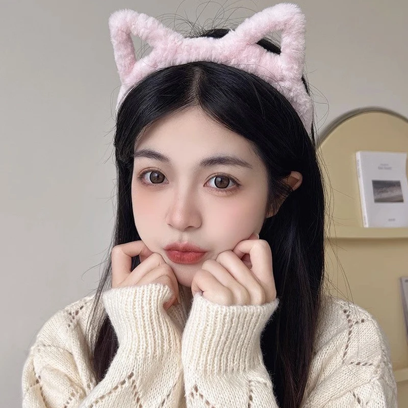 1pc hollow cat ears hairband girl heart hairpin cute plush headband wash face mask hairband hair tie clip