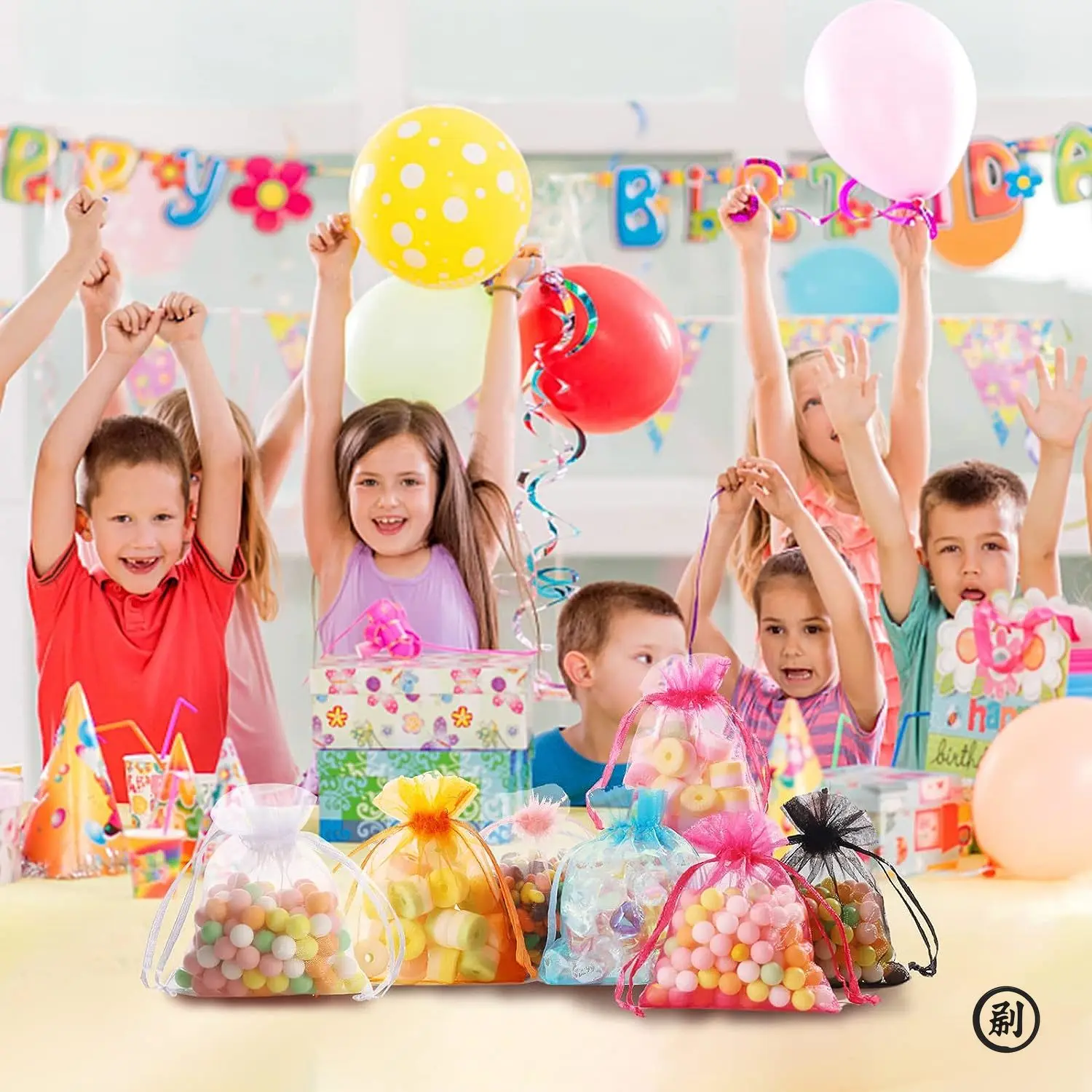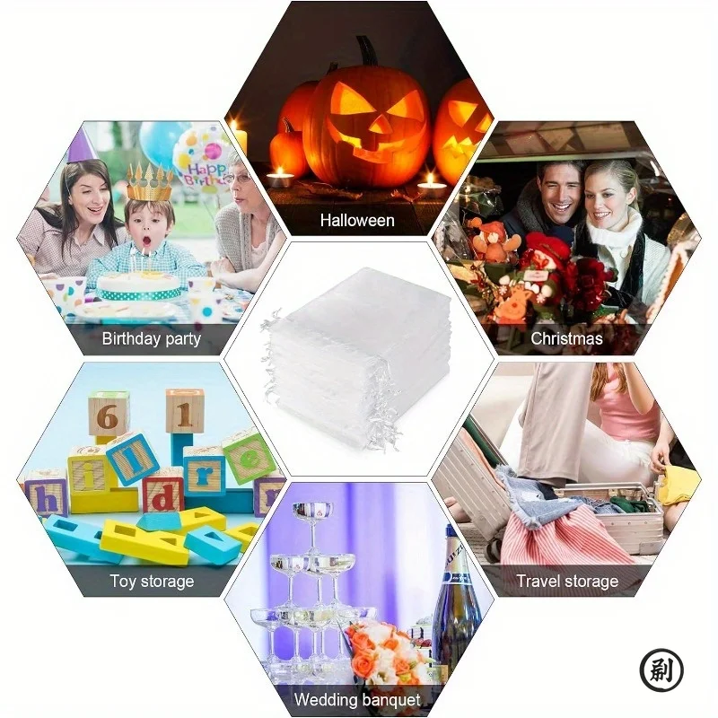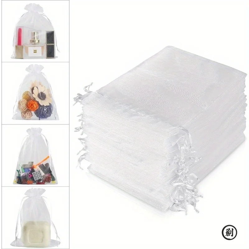 100PCS Organza Bags Random Mesh Organza Jewelry Bags Drawstring, Small Drawstring Favor Pouches Christmas Candy Wedding Birthday
