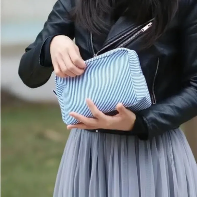 aliexpress , ali , shop , ali shop , online , store , online shop , online store , buy , sell , Seersucker Ruffle Cosmetic Bags Pink/Purple Striped Storage Make Up Bags for Women Lady with Zipper Travel Bag Makeup Bag