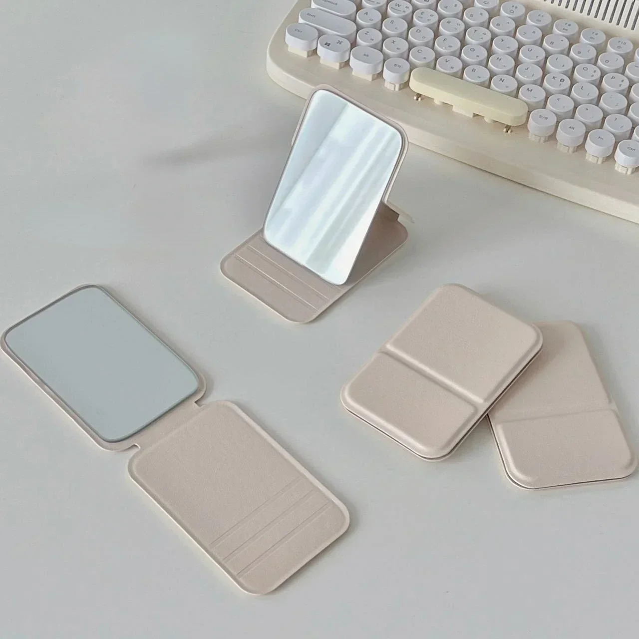 Desktop makeup mirror PU leather simple portable handheld makeup mirror foldable student compact cute pocket mirror