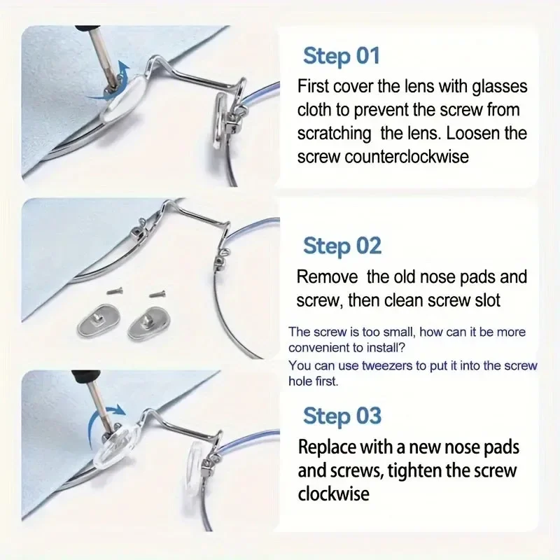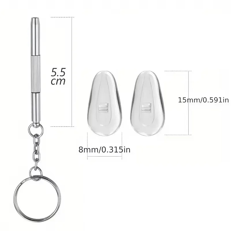 Eyeglasses Nose Pads with Screwdriver Soft Oval Silicone Air Chamber Glasses Anti-slip Nose Pad Screw Replacement Repair Tools