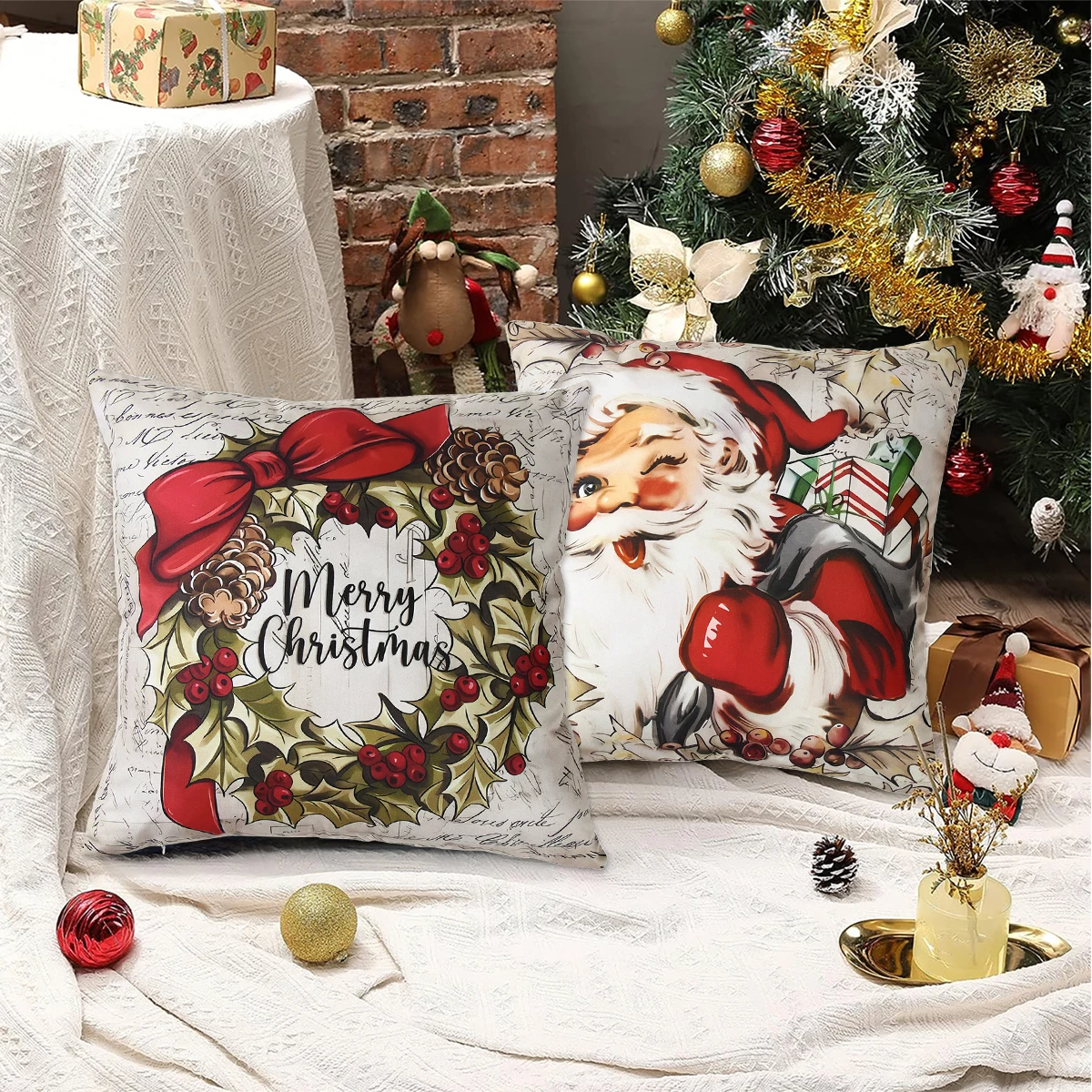 4pcs Christmas Pillow Covers 45x45cm Pillowcases Christmas Throw Pillow Covers For Home 2024 Xmas Sofa Couch New Year Gifts 2025