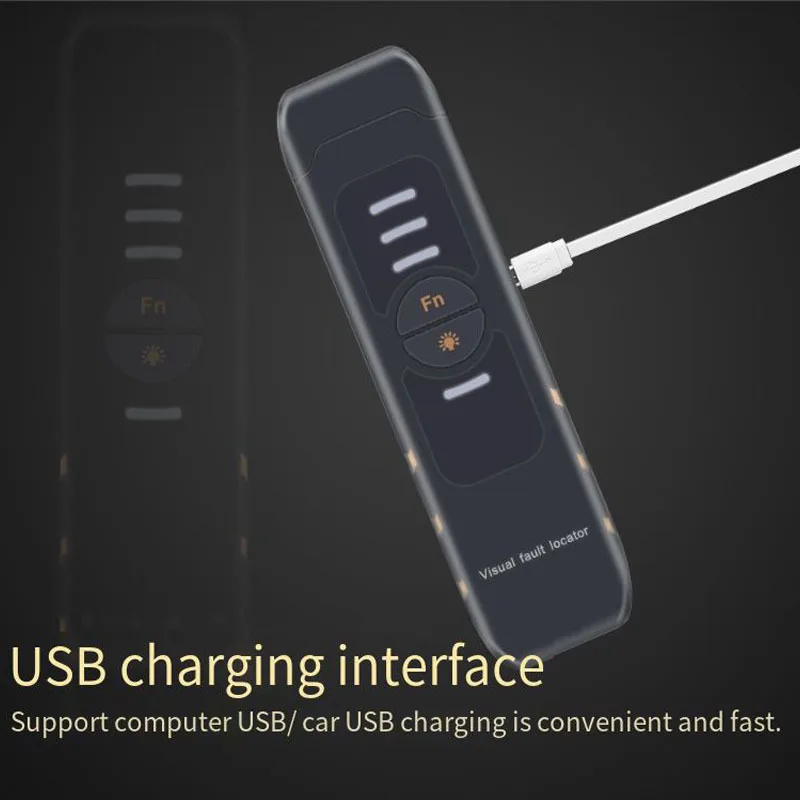 Fiber Optic Tester Tool VFL 30KM 10MW 30MW FTTH Laser Optical Red Light Pen Visual Fault Locator USB Charge LED Lighting