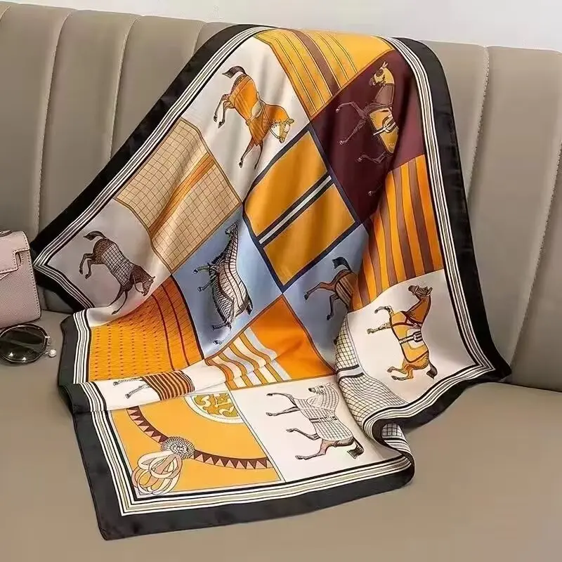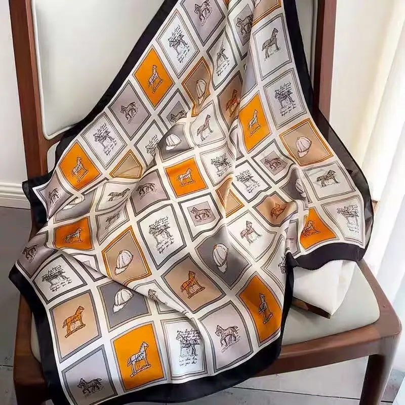 1 pcs 70x70 Imitation Silk Satin Hair Scarf Women Handkerchief Printed Female Square Head Bandana Small Neck Muffler Hijab Lady