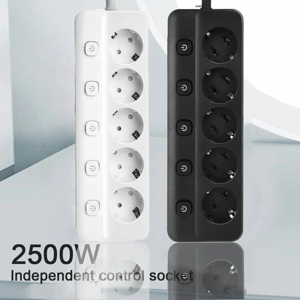 Power Strip EU Plug AC Outlets Multitap Socket Extension Cord Electrical Independent control switch Network Filter Adapter