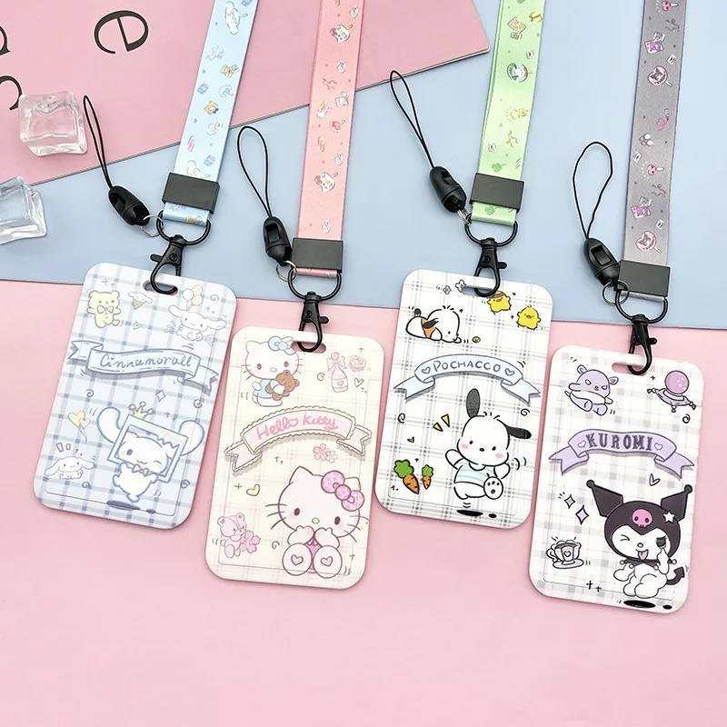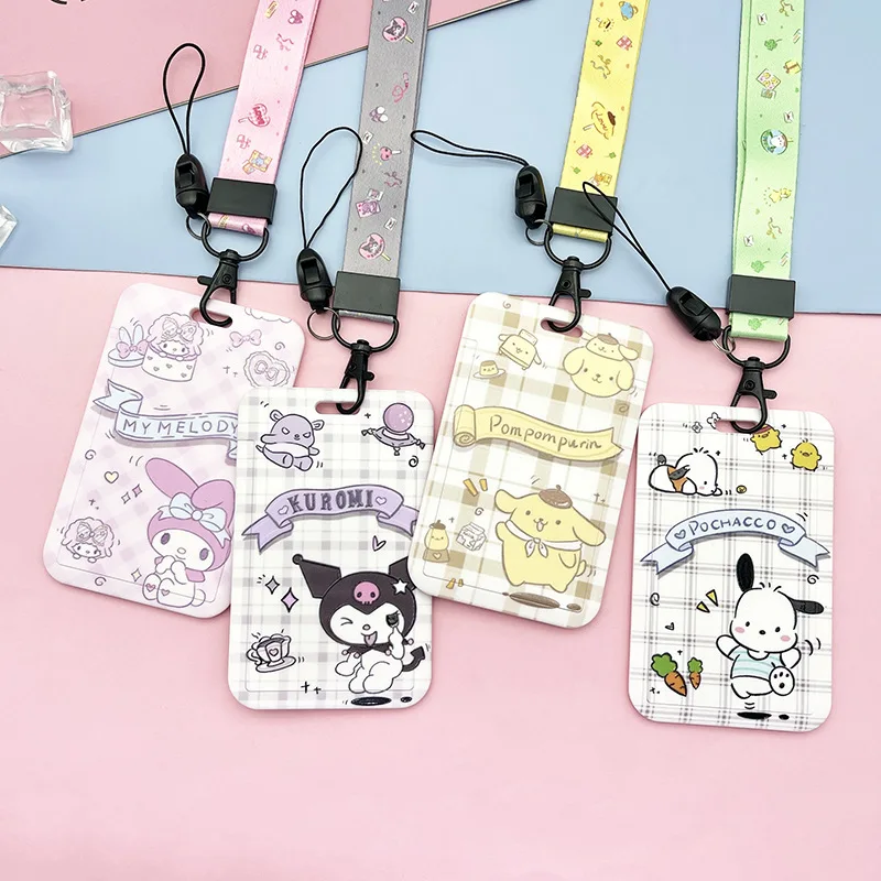 Cinnamoroll ID Badge Holder Neck Strap Pendant Kuromi Door Card Holders Lanyards Girls Pompom Purin Lanyard Credential Holder