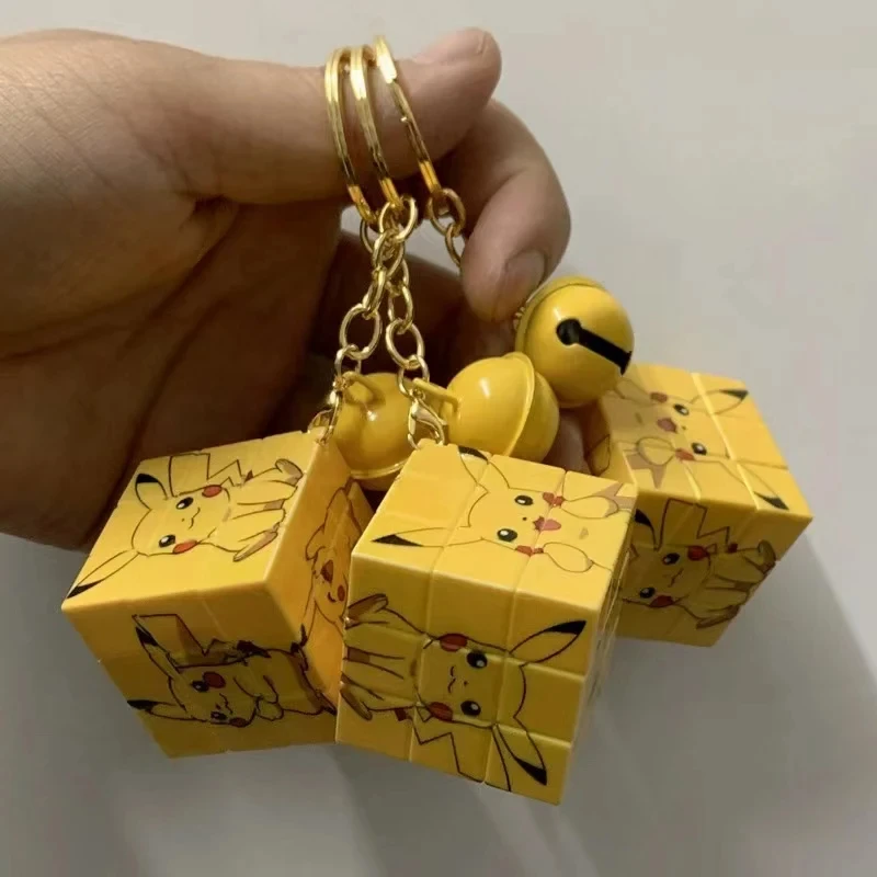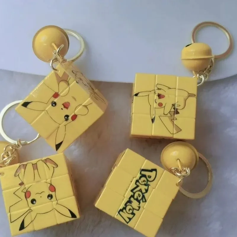 Pokemon Creative Pikachu Mini Rubik's Cube Keychain Pendant Cute Car Couple School Bag Pendant Thinking Cartoon Puzzle Toy Gift