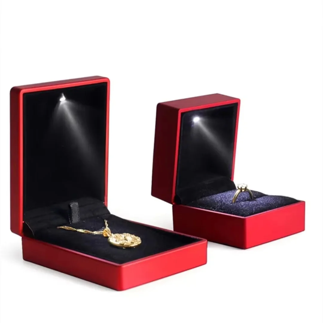 Jewelry Box Square Wedding Ring Case Pendant Box Gift Box With LED Light Valentine's Day Present Engagement Wedding Ring Case