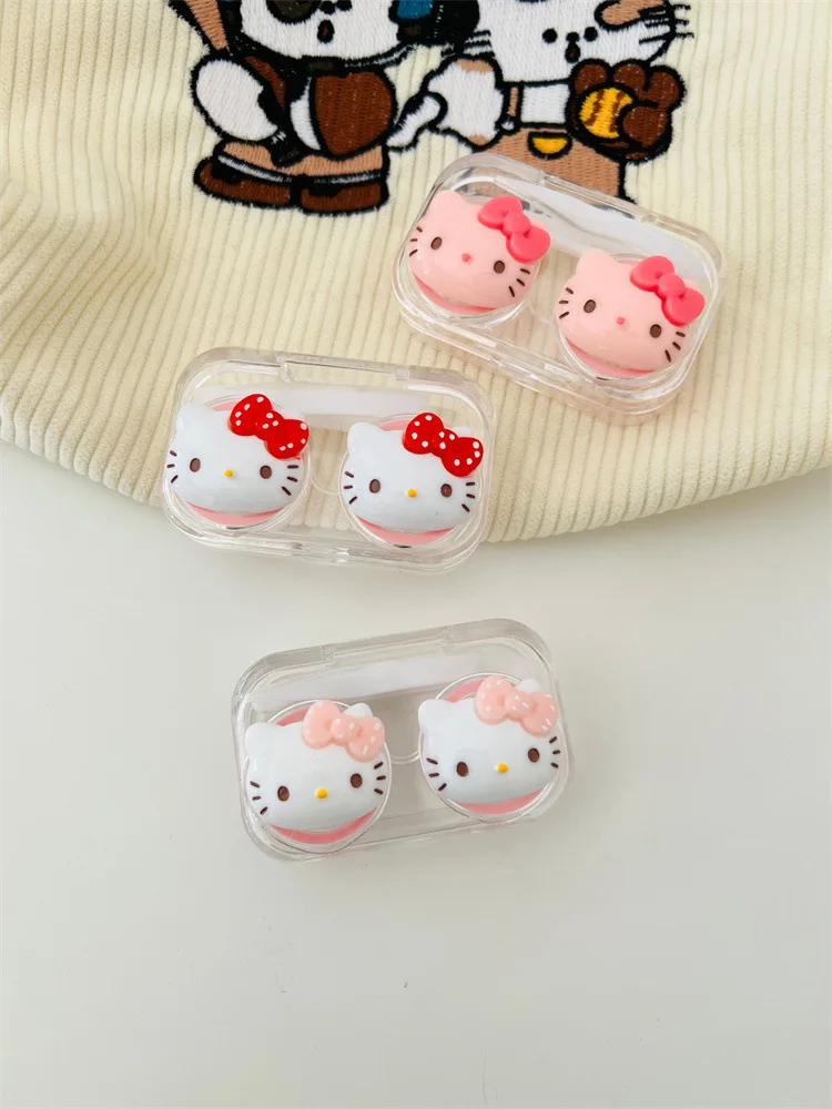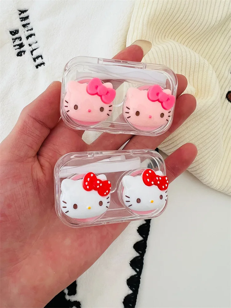 New Hello Kitty Contact Lens Case Transparent Cartoon Kawaii Portable Nearsighted Contact Lens Case Girl Travel Gifts