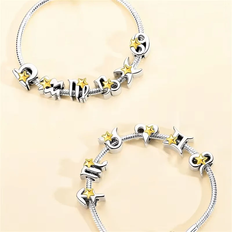 2025 Hot Sale Charms Bead 26 letters 925 Sterling Silver 12 zodiac signs Dangle Fit Bangle Bracelet Necklace DIY Jewelry Gifs