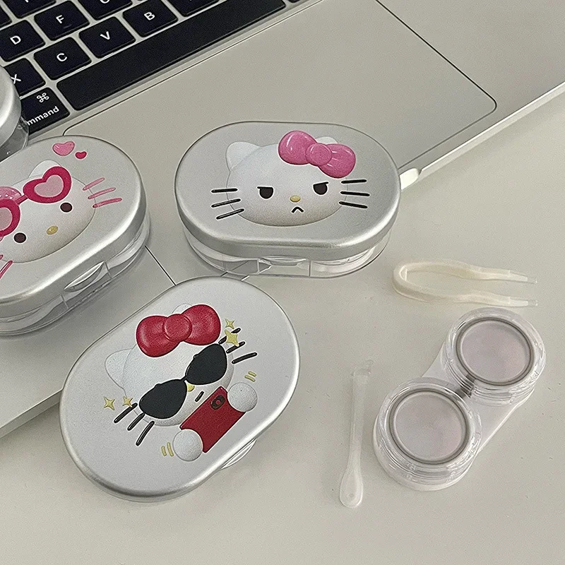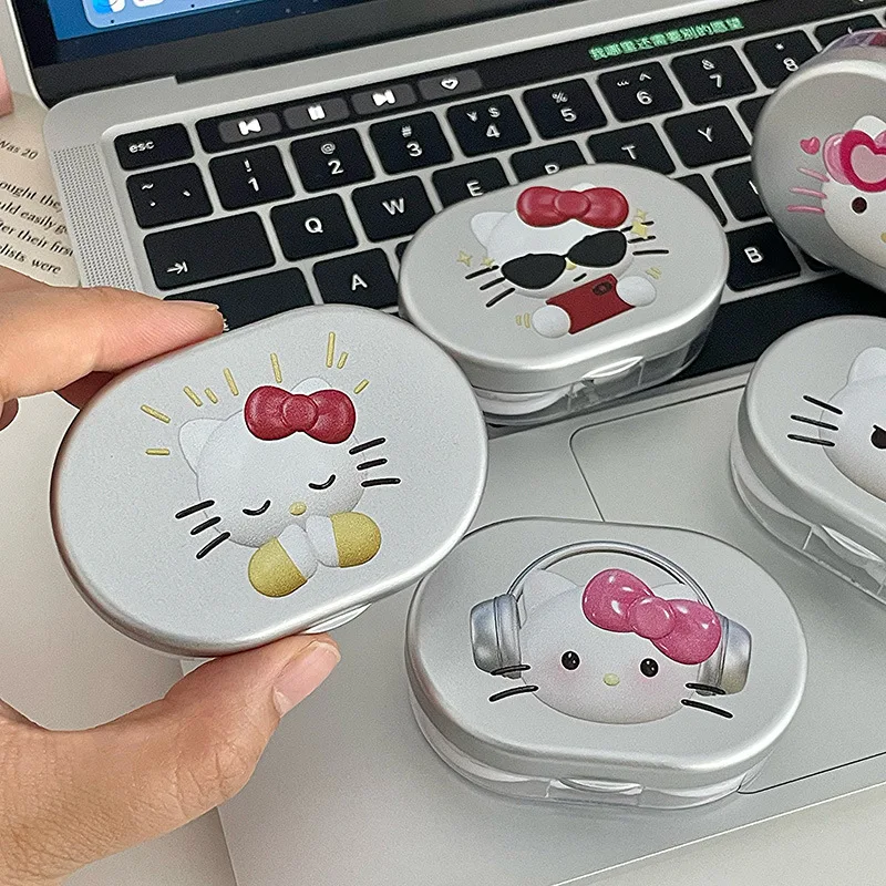 Sanrio Hello Kitty Contact Lenses Box Portable Travel KT Cat Doll Eye Lenses Compact Storage Container Girl Birthday Gifts