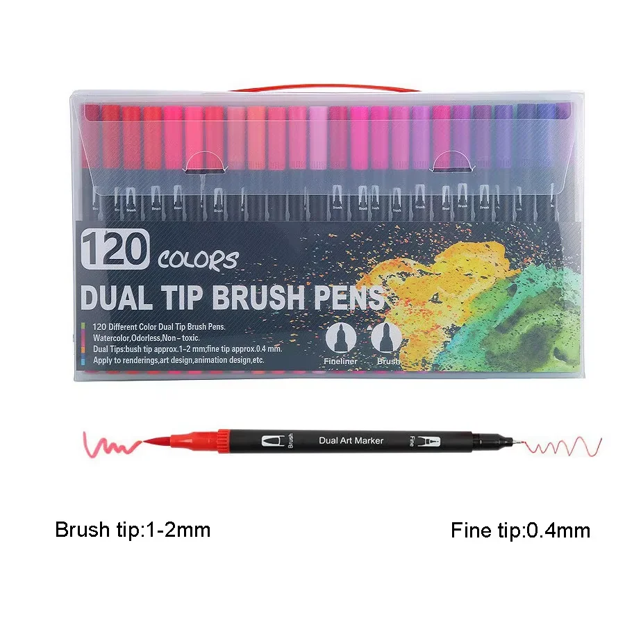 12-120 Color Double-Head Art Marker Pen Water-Based Highlight Washable Children's Painting Graffiti School Stationery Supplies
