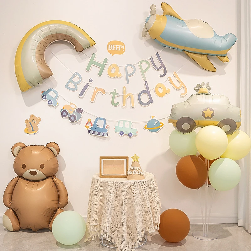 Matte Theme Foil Balloon Bear Rainbow Cake Candy Aircraft Car Star Helium Balloons Wedding Baby Shower Birthday Party Decoration