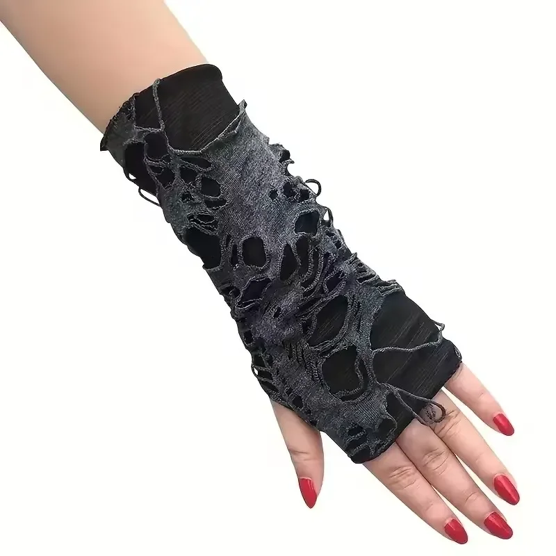 New Hot Sale Fashionable Simple Gothic Fingerless Gloves Uni Tear Design Stretchy for Party Preparation and Durable