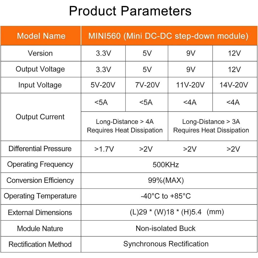 High Efficiency Output 3.3V 5V 9V 12V 5A mini560 Step Down DC-DC Converter Voltage Regulator Buck Stabilized Power Supply Module