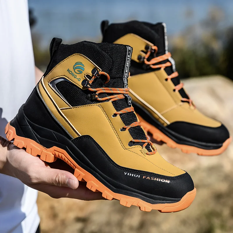 High Top Men's Safety Shoes Steel Toe Anti Smash Safety Boots Puncture Proof Work Safety Boots Wear-Resistant Men's Work Shoes
