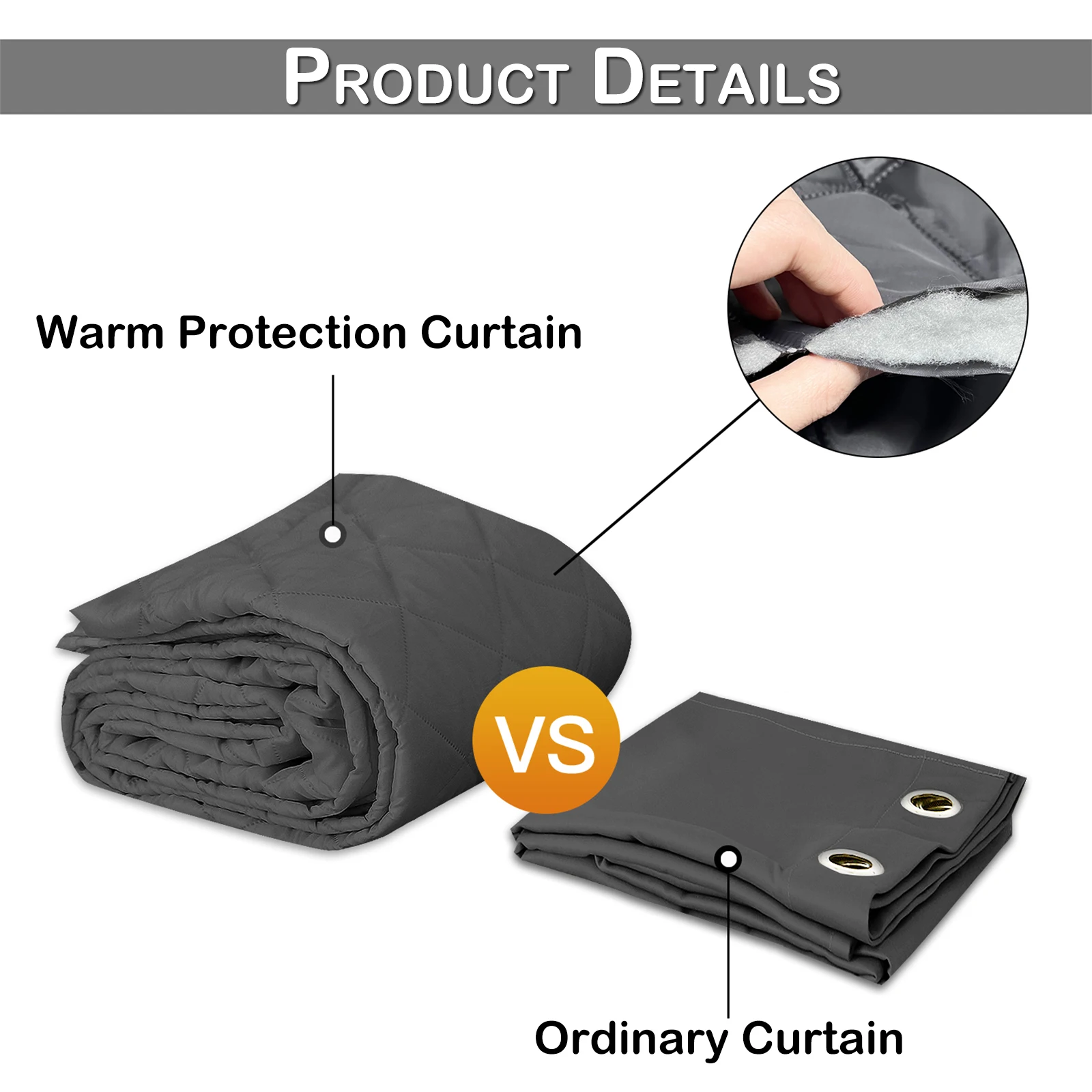 Quilted Blackout Curtains Heavy Duty Noise Reducing Thermal Insulated Drapes Liner Anti-cold Rod Pocket for Living Room Bedroom
