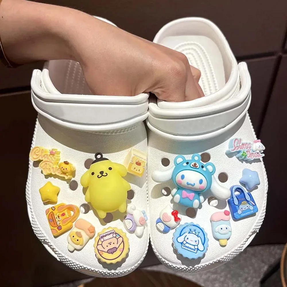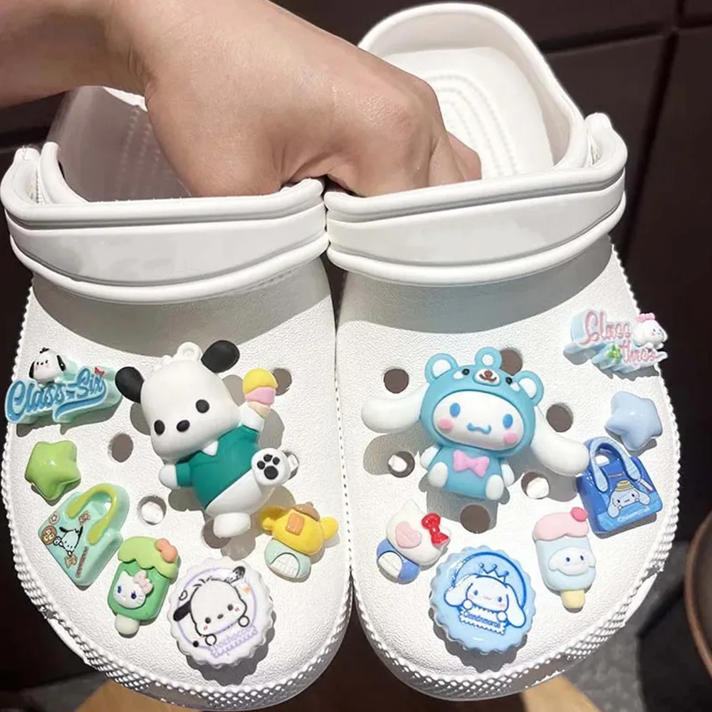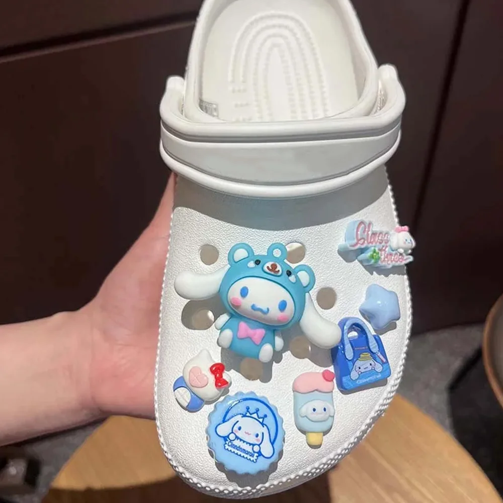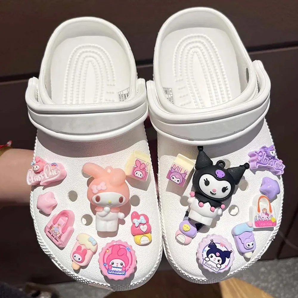 7-8pcs/set Sanrio Three-D Shoe Charms for Clogs Sandals Decoration Hello Kitty Kuromi Melody PVC Cartoon Shoe Accessories