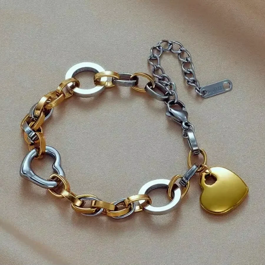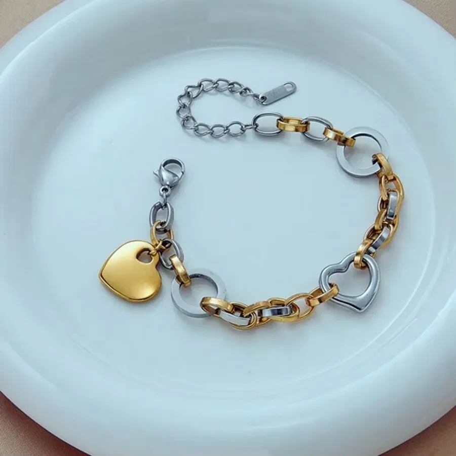 Doubel Layers Heart CHarm Bracelet Hollow Heart Round Double Color Bracelet Stylish Personality Simple Metal Braclet For Women