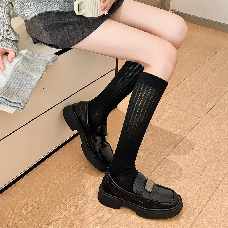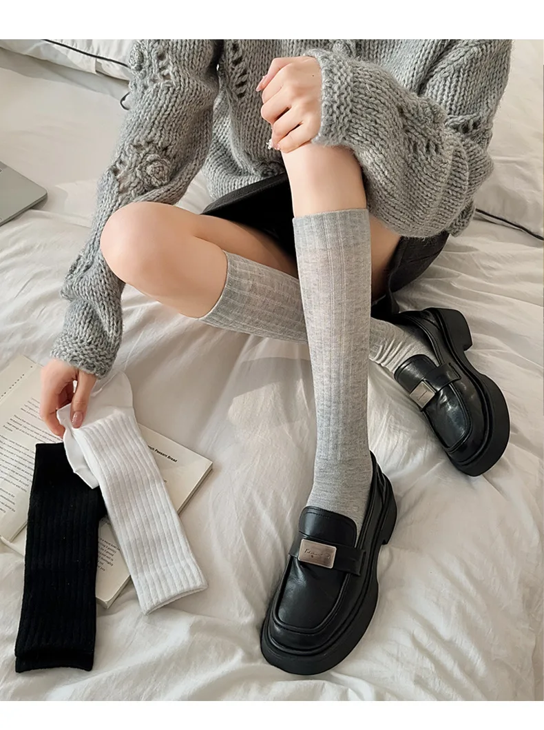 3 Pairs Autumn/Winter Thickened Coffee Colored Stacked Socks Japanese Knee Length Socks Double Needle Socks For Women