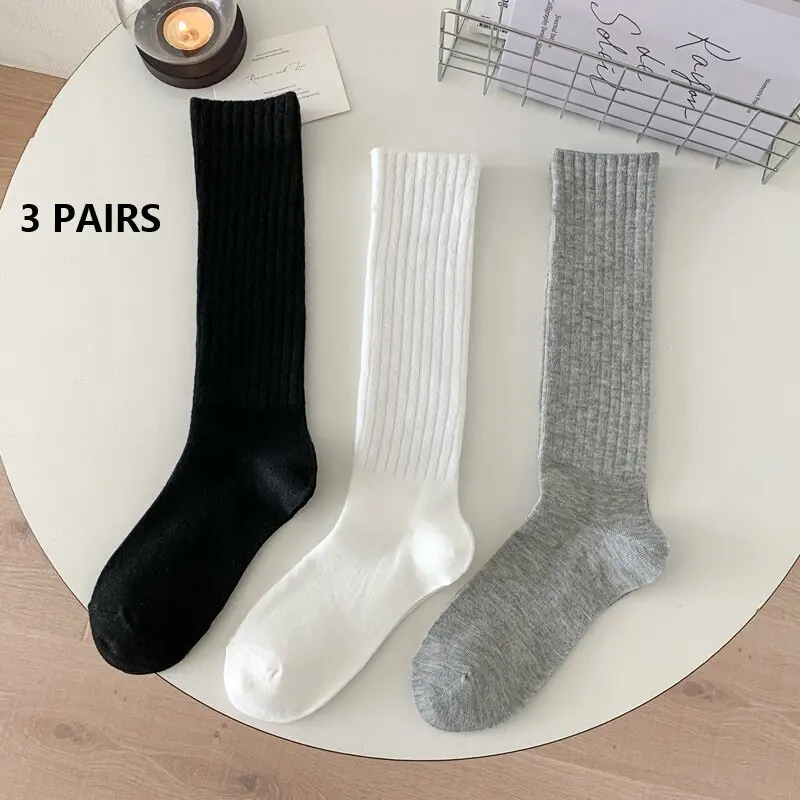 aliexpress , ali , shop , ali shop , online , store , online shop , online store , buy , sell , 3 Pairs Autumn/Winter Thickened Coffee Colored Stacked Socks Japanese Knee Length Socks Double Needle Socks For Women
