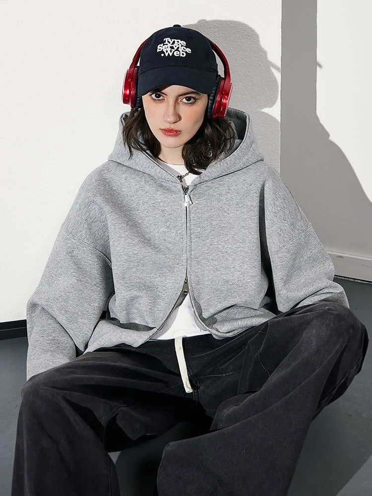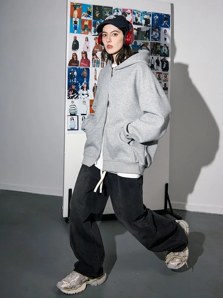 Women's Fashion Warm Hooded Jacket Fall Autumn Winter Gray Long Sleeve Pocket Double Zipper Jacket Commuter Casual Women Jacket