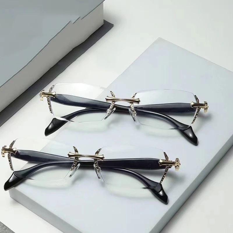 2024 Retro Frameless Ultra Light Women Men Reading Glasses Blocking Blue Light Computer Presbyopia Eyewear Eyeglasses +1.0..+4.0