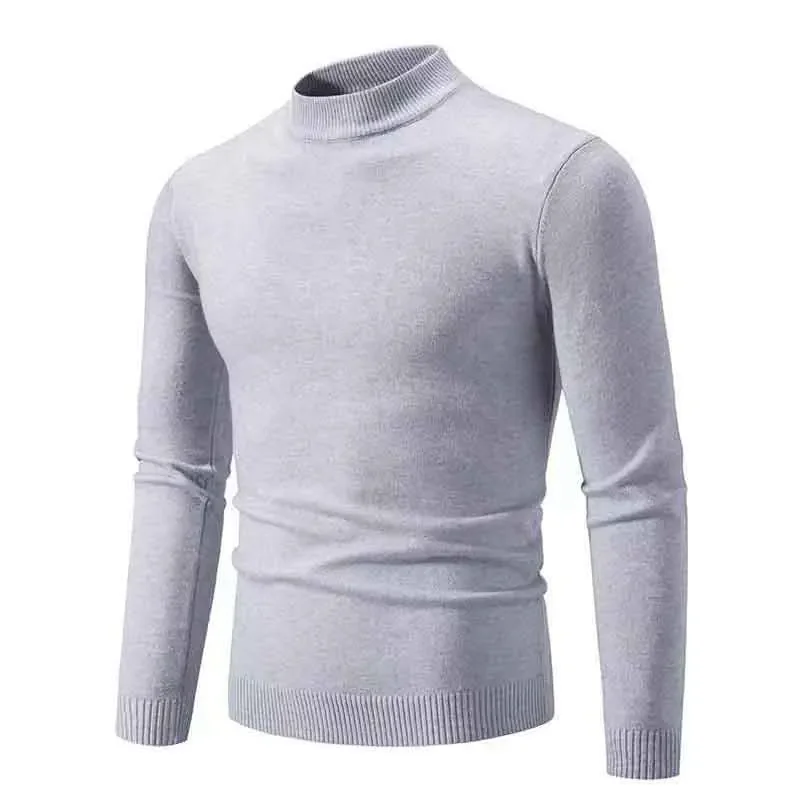 New Sweatwear Men's Half Neck Basic Solid Color Sweaters Round Neck Elastic Pullovers Warm Autumn Knitted Oversized Sweater Men