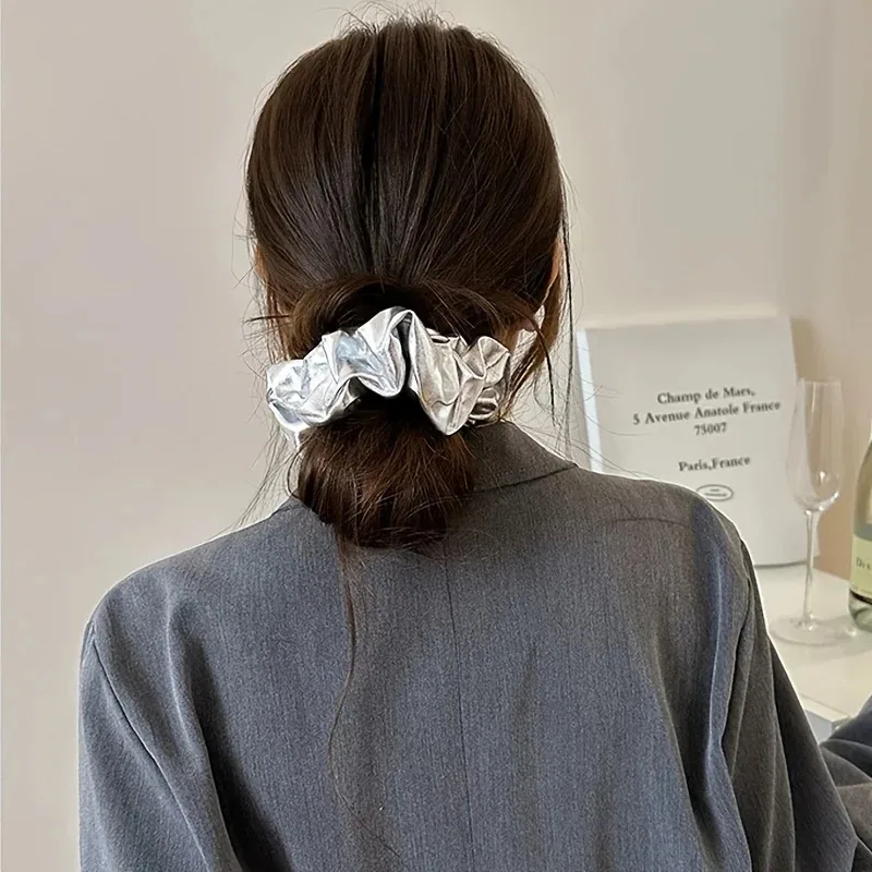 【Fashion Hair Band】1-Piece Creative Silver Pu Leather Hair Band | Women's Fashionable High And Low Ponytail Hair Band Headdress