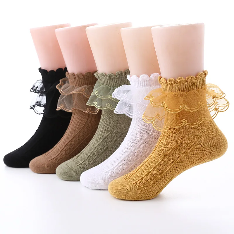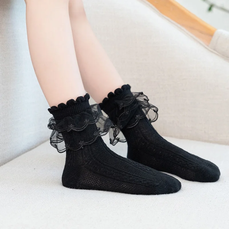 2023 Autumn Kids Socks For Girls Lace Tutu Baby Cotton Princess Children's Girls Socks Fashion Ruffled Teenagers Sock 1-15Years
