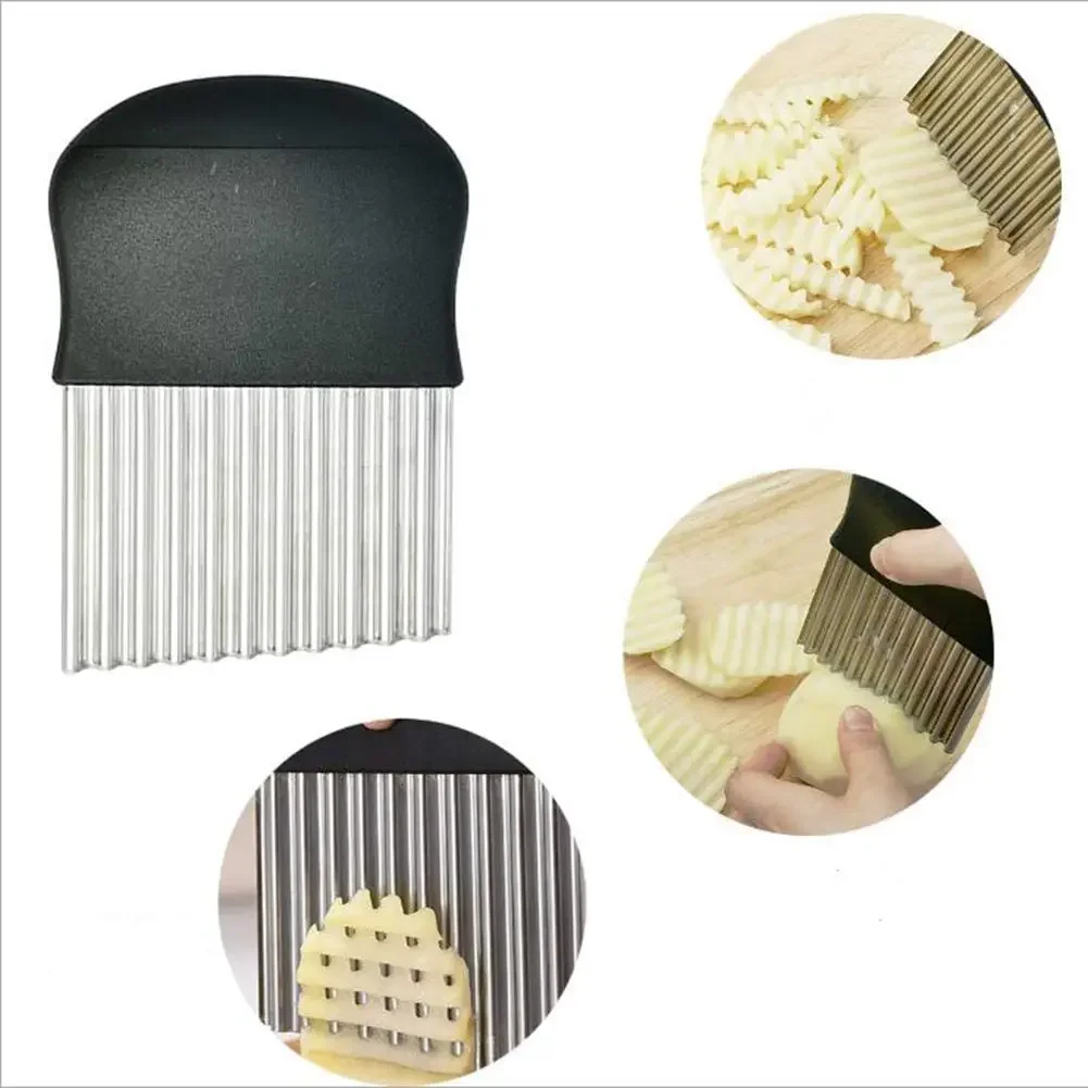 Crinkle Cutter Blade Waffle Fry Cutter Stainless Steel Vegetable Potato Wavy Chopper Knife French Fry Slicer for Carrot Onion