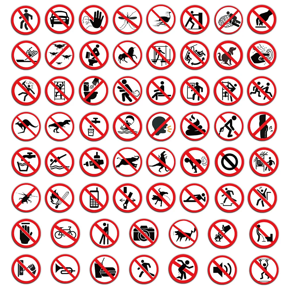 aliexpress , ali , shop , ali shop , online , store , online shop , online store , buy , sell , 62PCS Creative Funny Prohibited Identification Stickers Warning Signs Decorative Luggage Notebook Waterproof Sealing Stickers