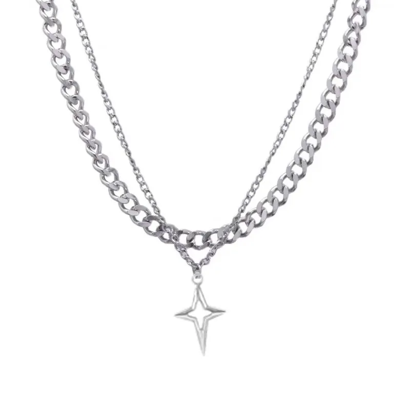 aliexpress , ali , shop , ali shop , online , store , online shop , online store , buy , sell , Double Layered Cuban Star Pendant Necklace for Man Titanium Steel Hip-Hop Design Collarbone Chain Unisex Jewelry Wholesale