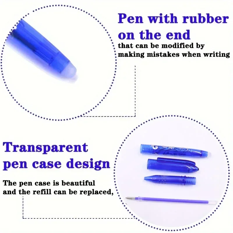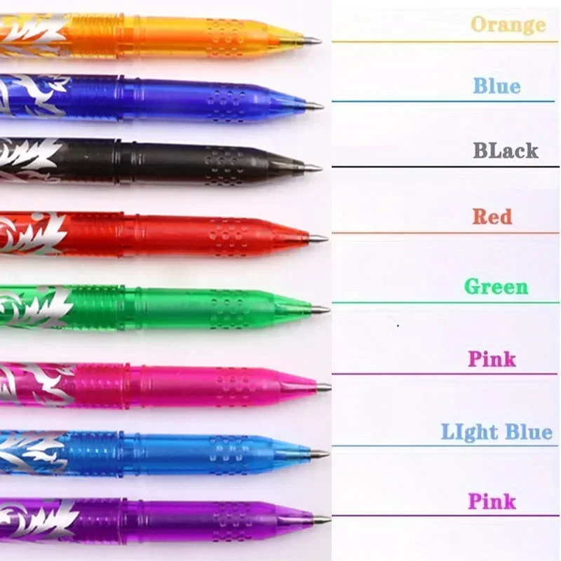 8pcs Multi-Color Erasable Gel Pen 0.5mm Tip Painting Writing Drawing School Black Blue Red Pink Orange Green Purple Light Blue