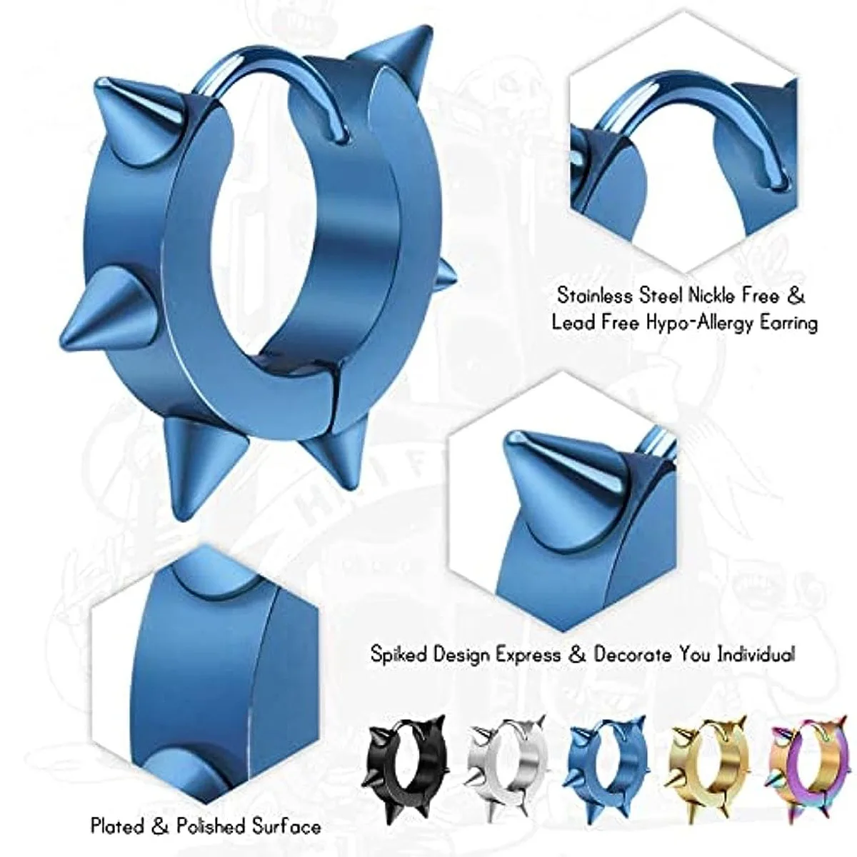 Clearance_1 Pairs Stainless Steel Hinged Hoop Earrings For Men, Punk Spike Earrings_Continuous updates
