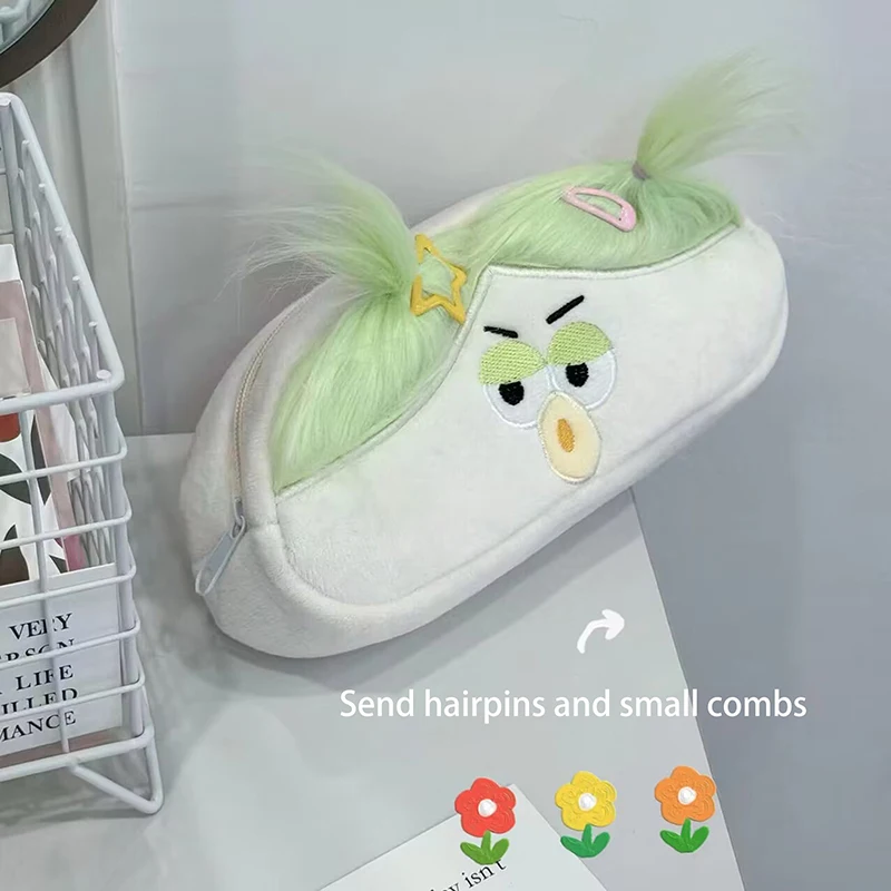 Kawaii Funny Big Capacity Plush Pencil Bag Creative Cartoon Big Mouth Girl Pens Storage Case Portable School Stationery Gift
