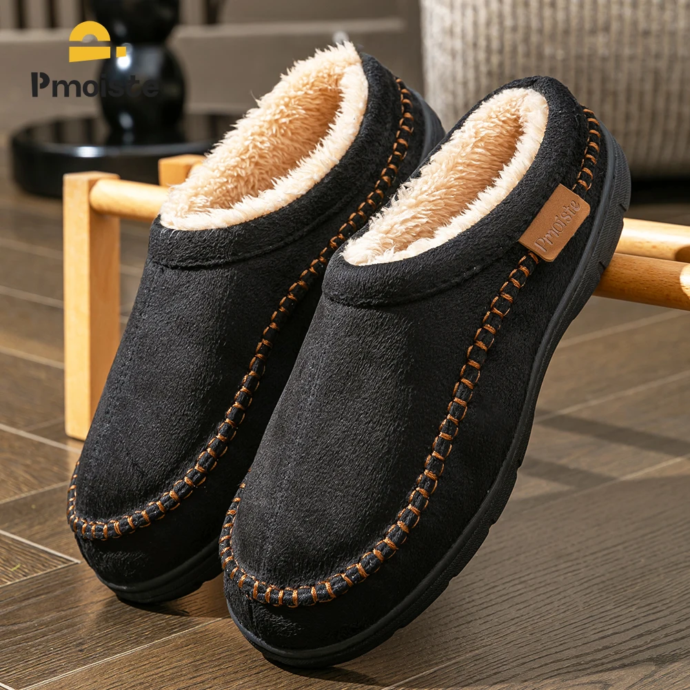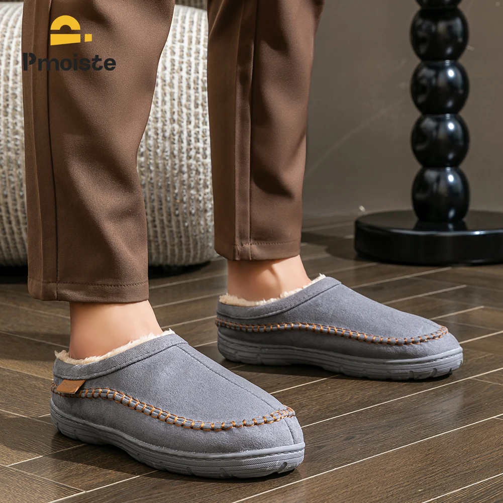 Winter Slippers for men Mark Line TPR Sole Faux Suede Warm Non Slip Soft Memory Foam Cushion Living Room Shoes